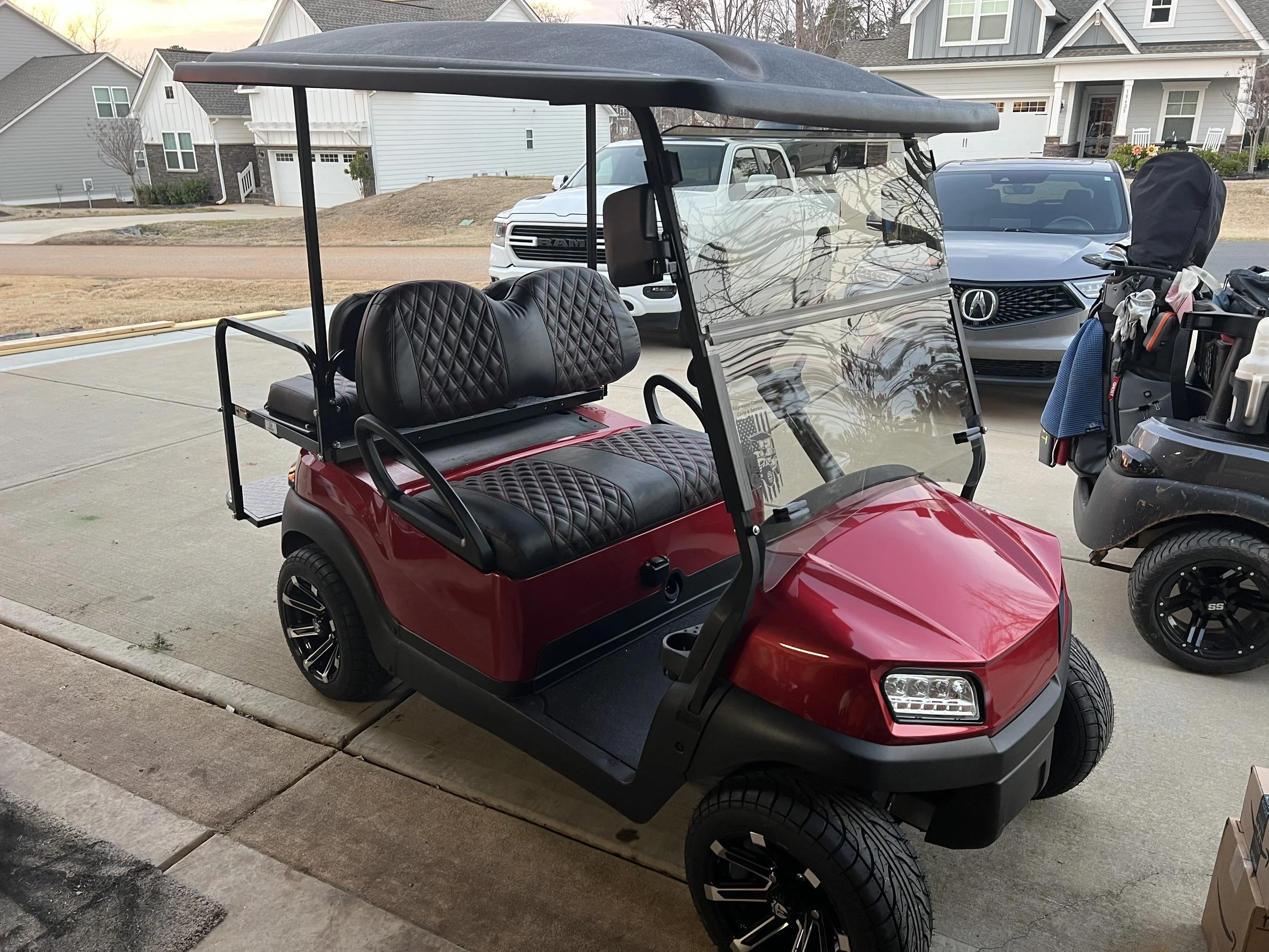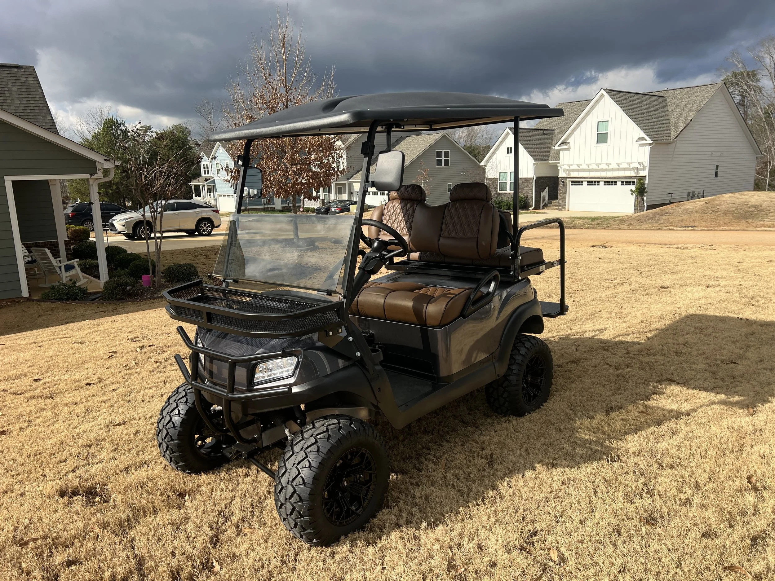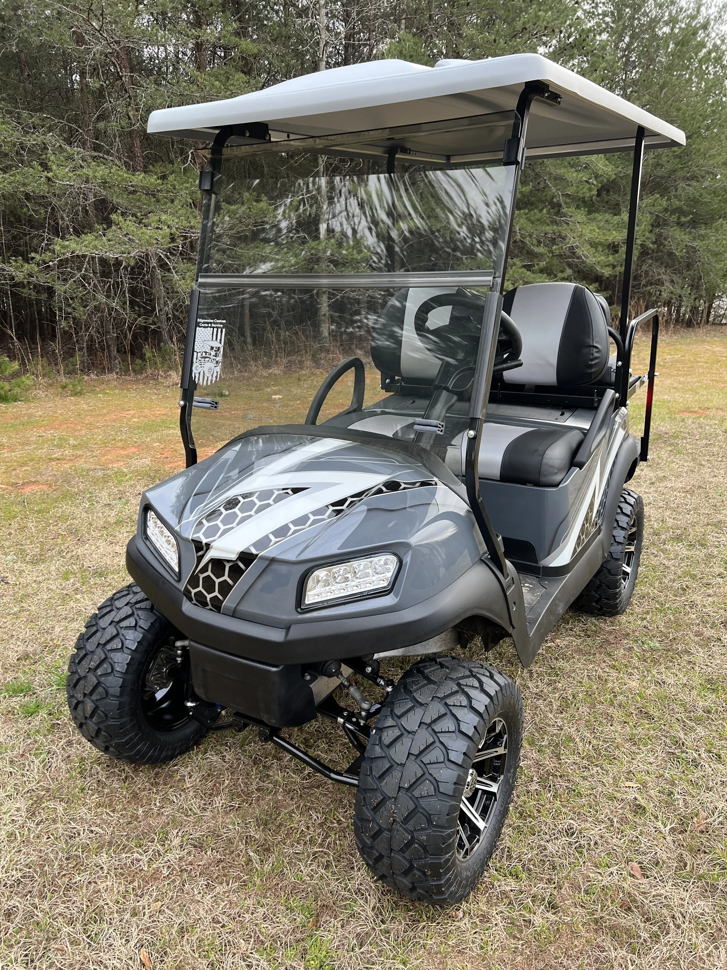 At Edgewater Custom Carts, we design and build custom golf carts in the Carolinas tailored to your driving needs — whether that’s high-speed performance, neighborhood cruising, lifted off-road capability, or a fully upgraded lithium-powered build.